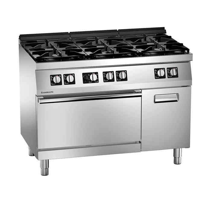 CUCINA GAS 6 FUOCHI SU FORNO GAS VENTILATO E VANO 120x72x90 cm