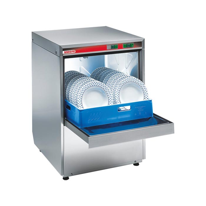 Realizzata in acciaio inox AISI304, struttura monoparete, porta doppia parete isolata. N. 2 cicli di lavaggio, bracci lavaggio e risciacquo rotanti inferiori e superiori. Funzione Thermostop (inizio risciacquo a 85°C), dosatore brillantante. Corredata di cestelli in resina. Produttività indicativa 540 piatti/h. Alimentazione trifase.